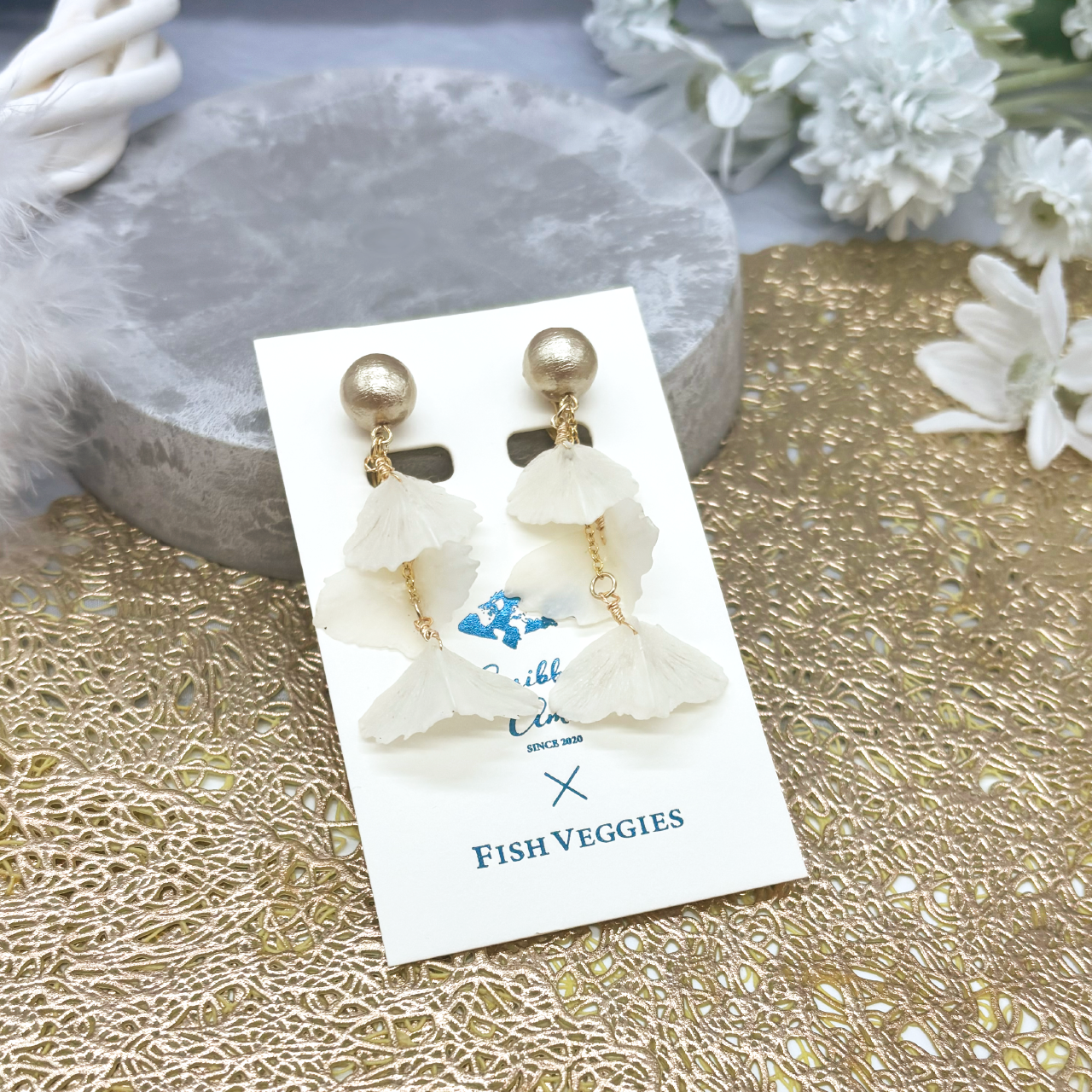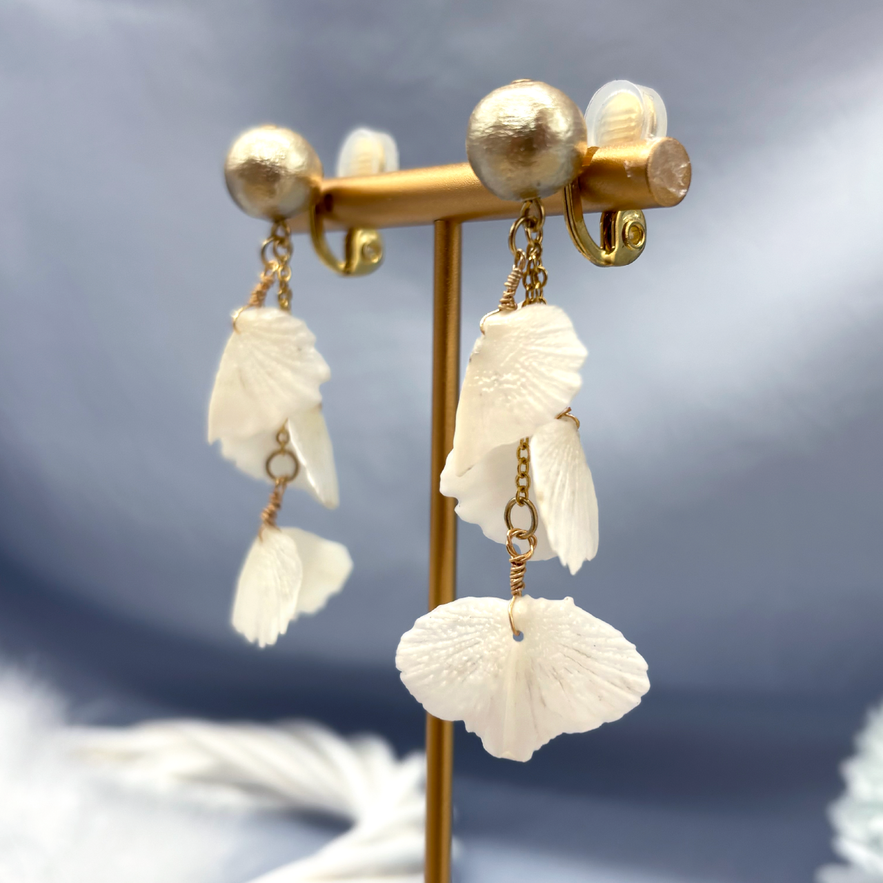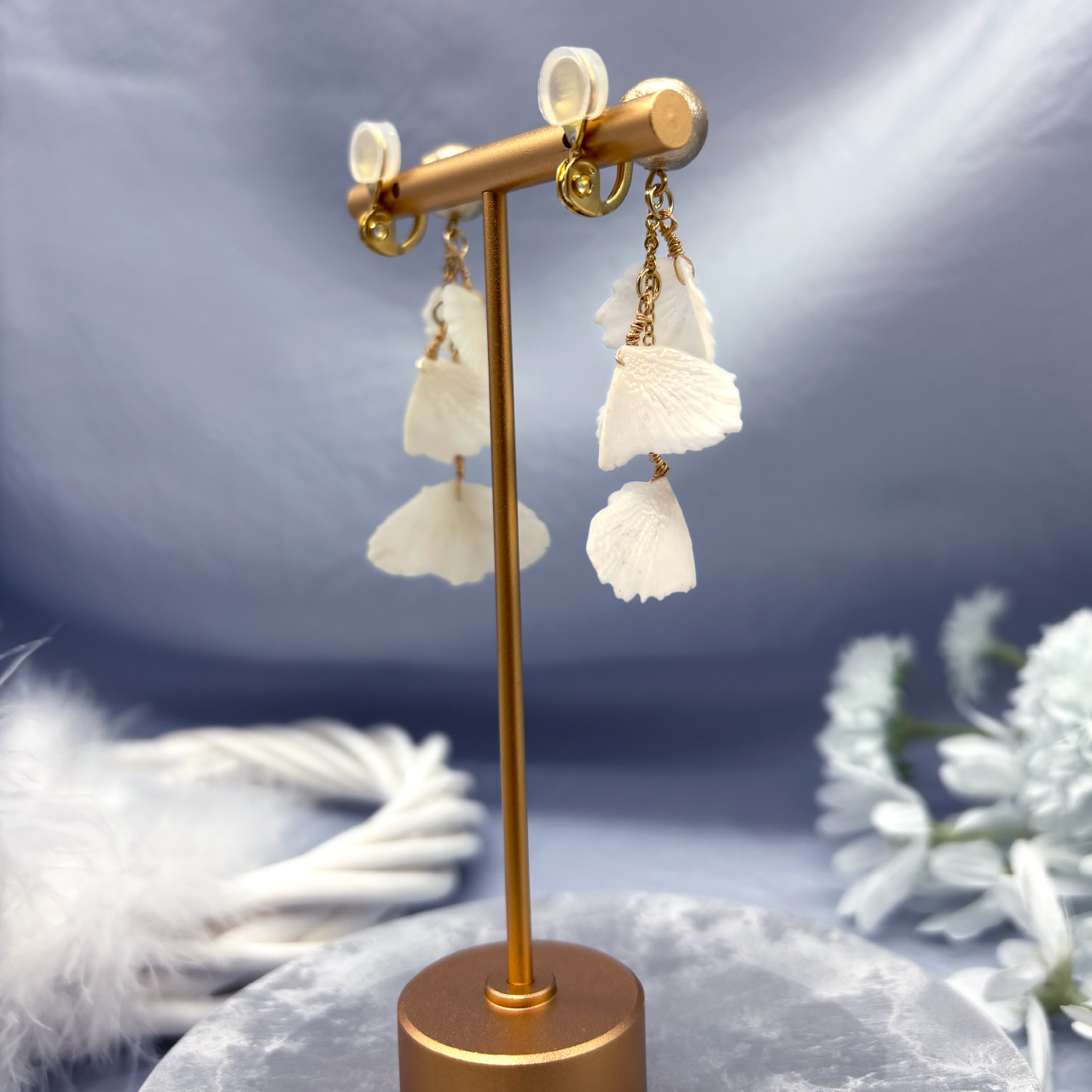 チョウザメ鱗3連イヤリング