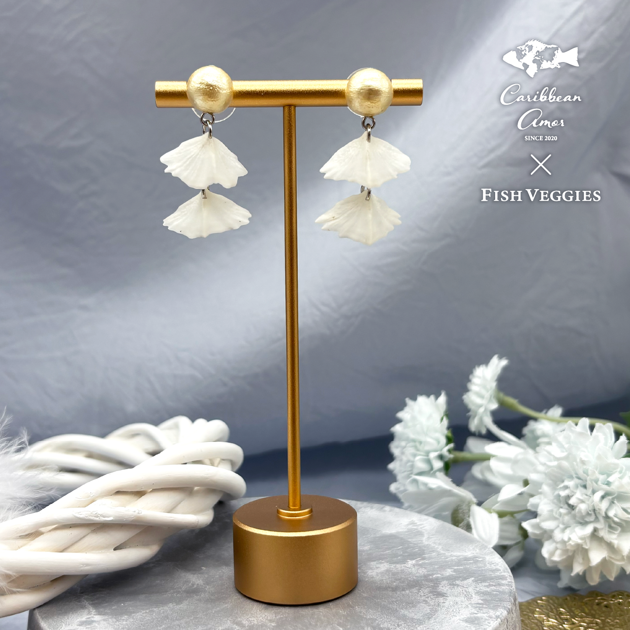 チョウザメの鱗を2つ繋げた、軽く揺れる動きが魅力的なデザインのピアス。