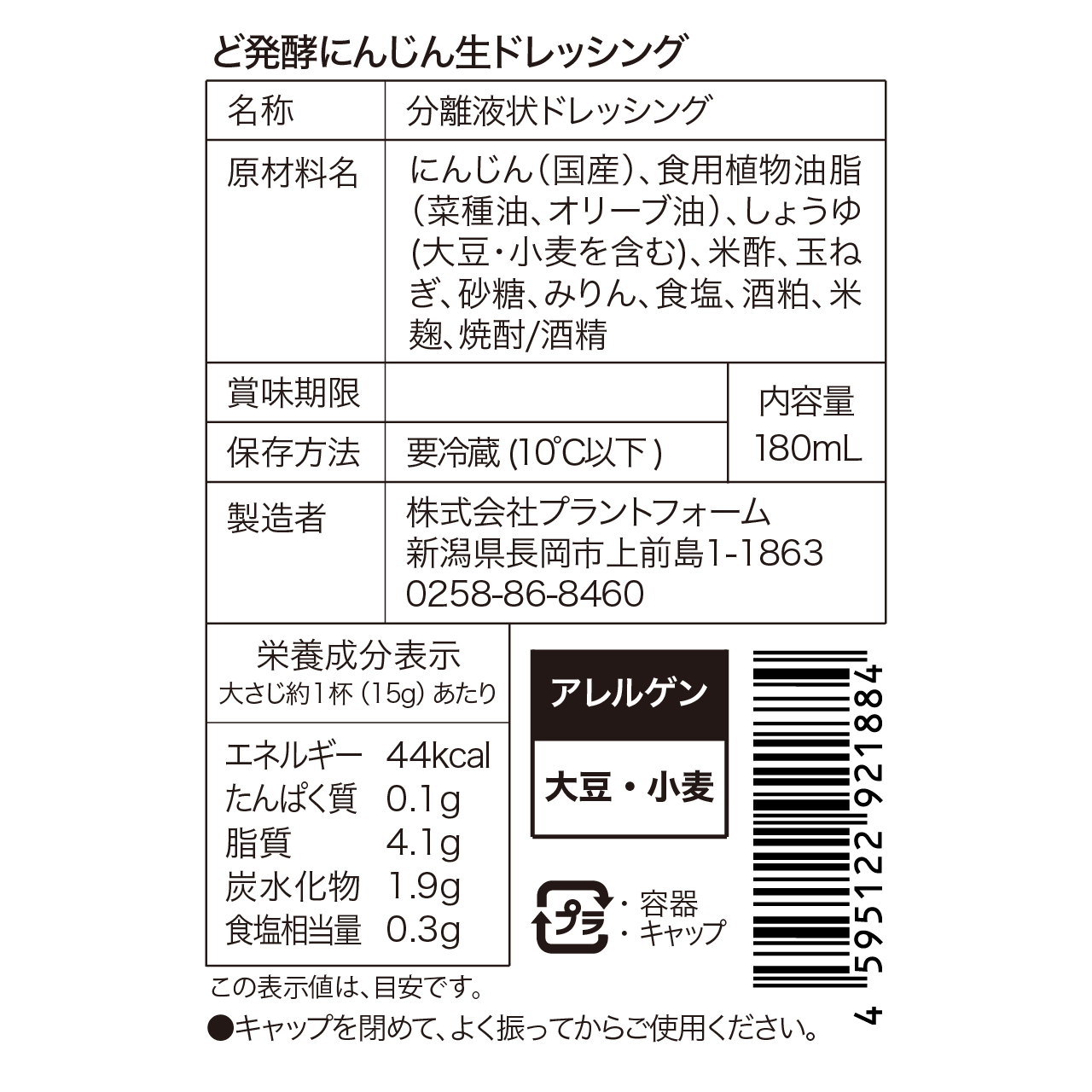 ドレッシング原料:玉ねぎ(国産)、米酢、食用菜種油、塩麹、ビーツ、みりん、砂糖、レモン汁、しょうが、酒粕、しょうゆ(大豆・小麦を含む)、米麹、焼酎、食塩/酒精