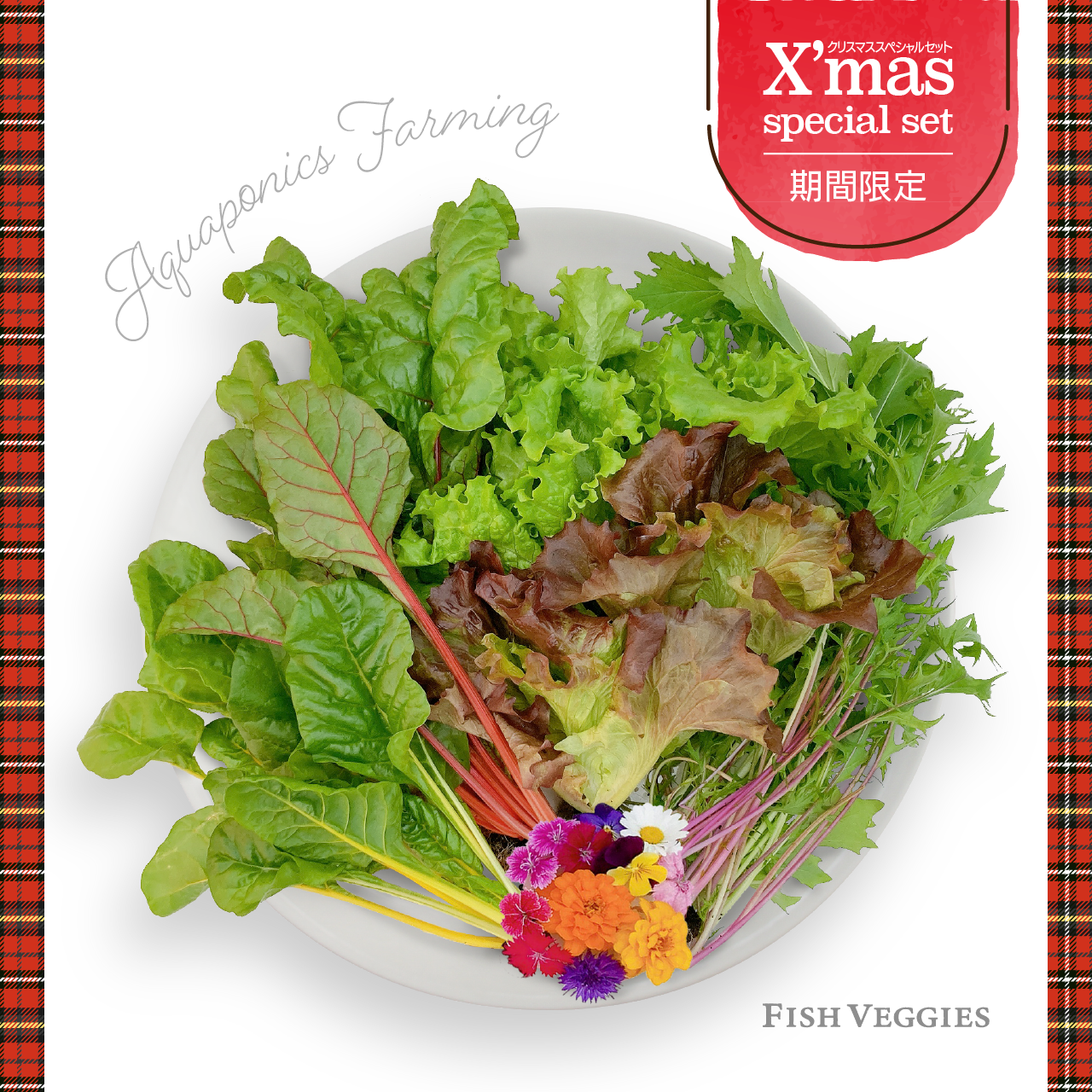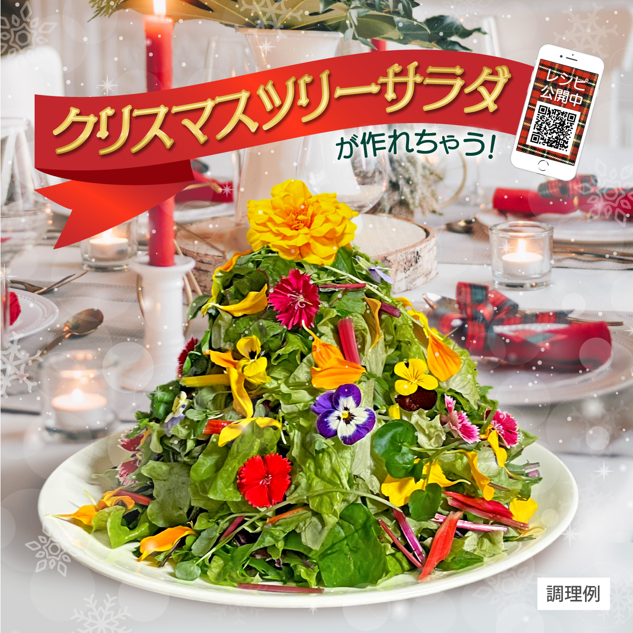 FISH VEGGIES(フィッシュベジ)のお野菜と食べられるお花を贅沢に使って、簡単なのに華やかなクリスマスツリーサラダを作れるセットが登場です!