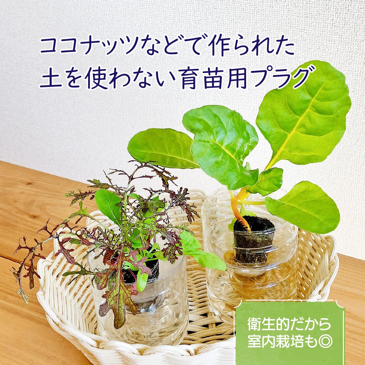 ココナッツなどを原料にして作られた、土を使わないプラグ