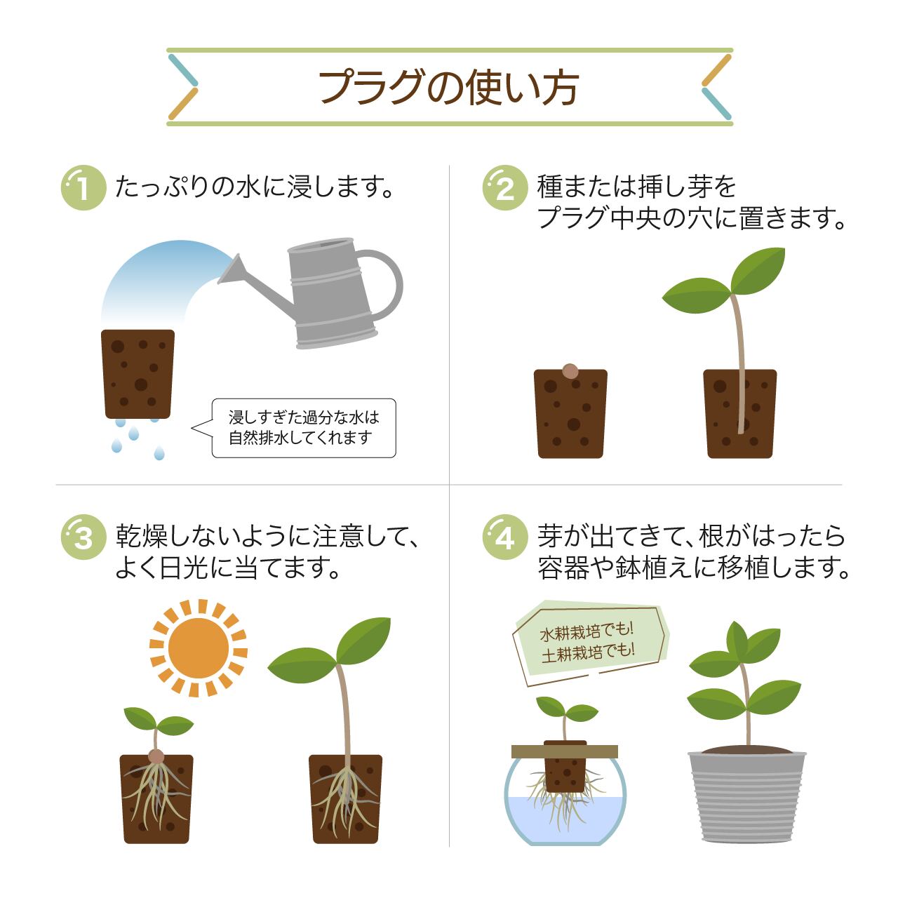 ココナッツなどを原料にして作られた、土を使わないプラグ