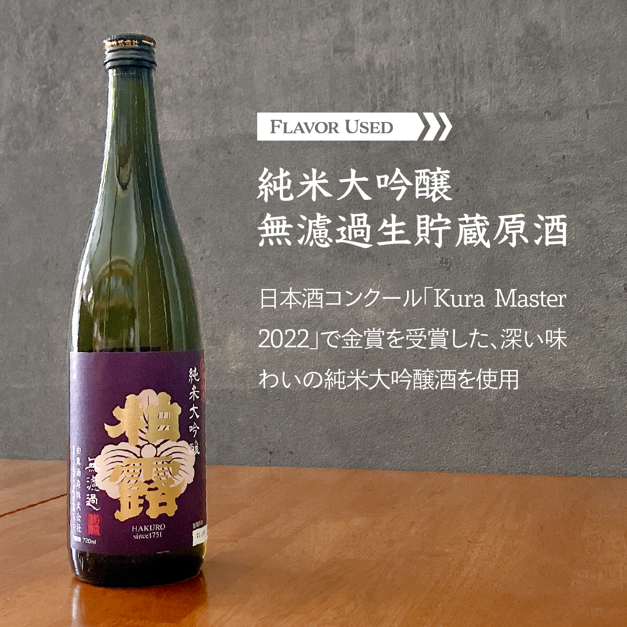 フレーバー付けに使用した日本酒:純米大吟醸無濾過生貯蔵原酒